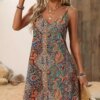 The smock-style construction gives the dress a soft, flowing look that suits casual outings, beach walks, and vacation wear. With its short length and breathable feel, this bohemian mini dress pairs effortlessly with sandals, flats, or simple accessories for a laid-back yet stylish summer outfit.