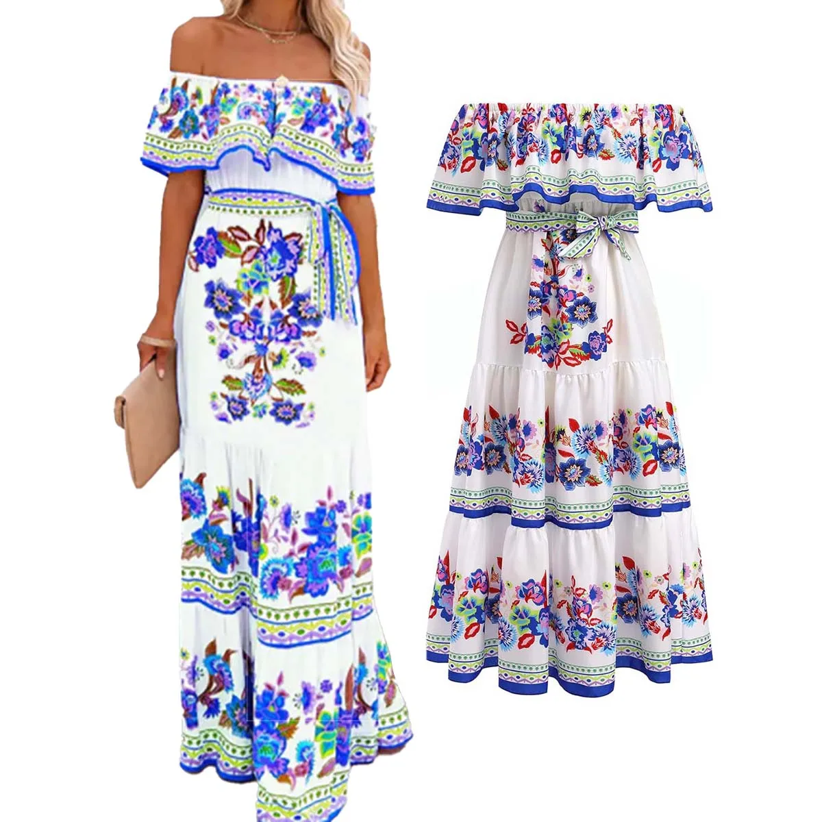 Be the first to review “Women’s Summer Off Shoulder Long Boho Floral Pattern Print Swing Dress” Cancel reply