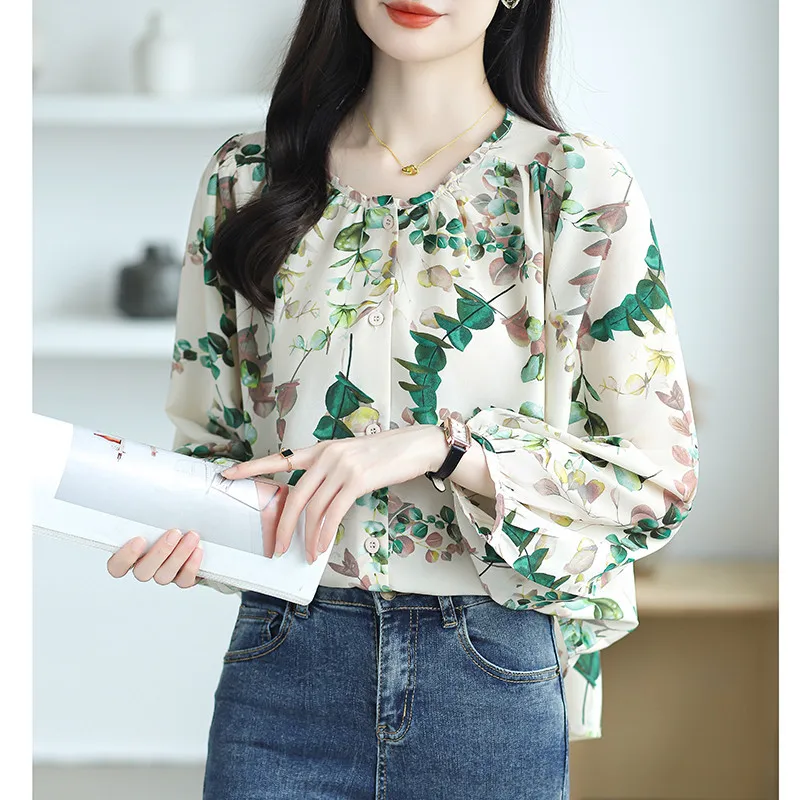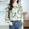 Women’s Travel Vacation Casual Loose Long Sleeves Floral Blouse Wear Shirt Leaf Print Tops Mom’s Clothes