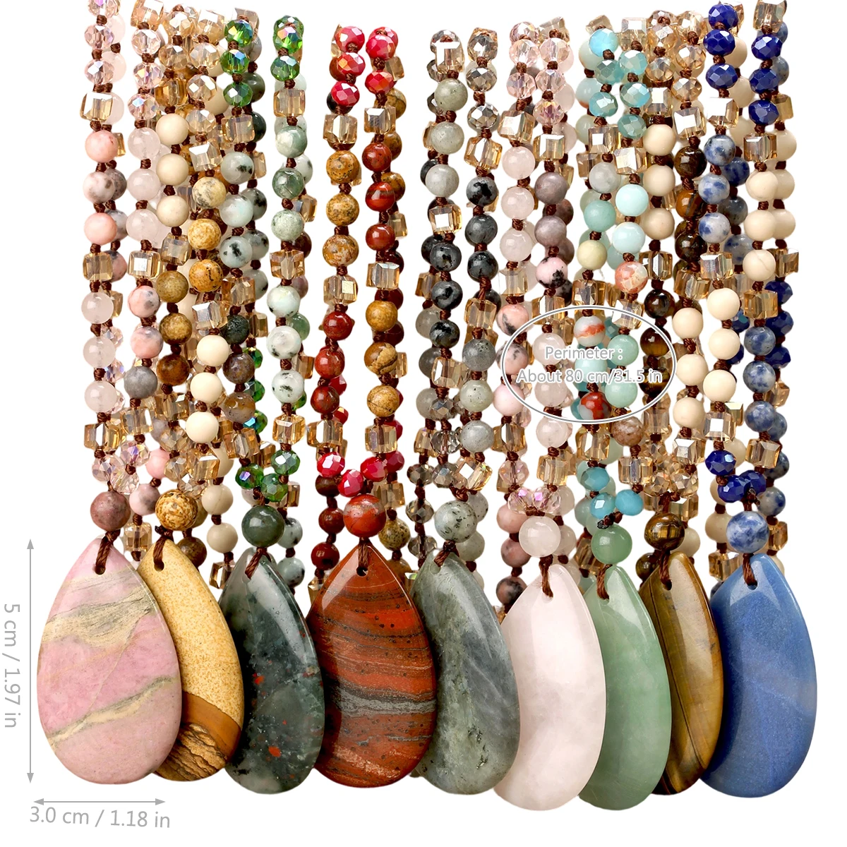 Be the first to review “9-Colour Selection Bohemian Natural Stone Large Teardrop Pendant Long Necklace/Jumper Chain For Women Hand-woven” Cancel reply